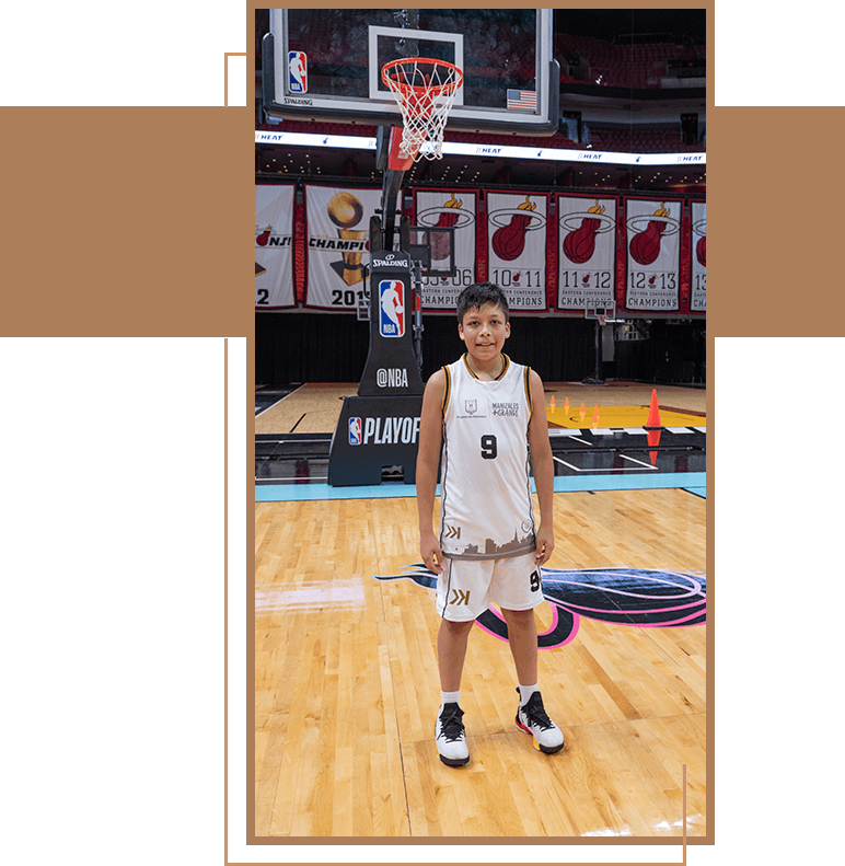 Tiene 13 años y es un apasionado por su disciplina. Está convencido de que cumplirá su sueño de ser un atleta profesional y pertenecer a una de las 5 mejores ligas del baloncesto del mundo.